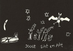 2009Een lino gebaseerd op een sinterklaastekening die Joost maakte in de tijd waarin hij nog in sprookjes geloofde. Een van de grootste leugens in de vaderlandse cultuur: Sint en Pieterbazen.