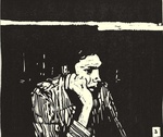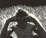 2009Nogmaals een linosnede. Een beeld met een hoog 'graphic art'-gehalte.