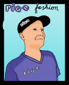 2019Pig Fashion trapt bips. Digital art, gebaseerd op een tekening die op papier is gemaakt. 'Funny art' wellicht.